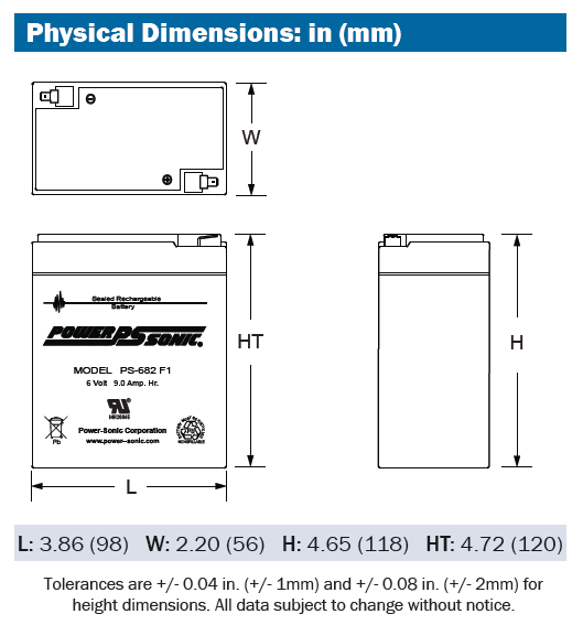 PowerSonic 6V 5AH Valve-Regulated Lead Acid Battery